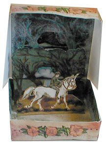 Eugenia, a Mildly Melancholy Bride, made by Kwei-lin using a damask patterned scrapbooking pad found at Target. Ingenious use of common scrap materials, and a wonderfully imaginative story to go along with it. "The character somehow managed to find a story," Kwei-lin writes in her caption (click on pictures to read), "so the set was mounted and words were added."